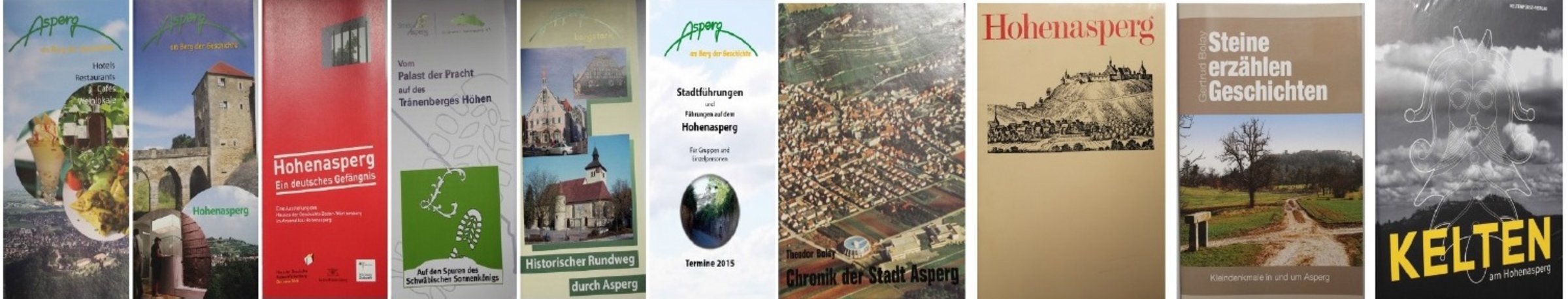Die folgenden Faltblätter, Broschüren und Bücher über Angebote und die Geschichte der Stadt Asperg erhalten Sie im Rathaus an der Infothek oder können bei der Stadtverwaltung angefordert werden.